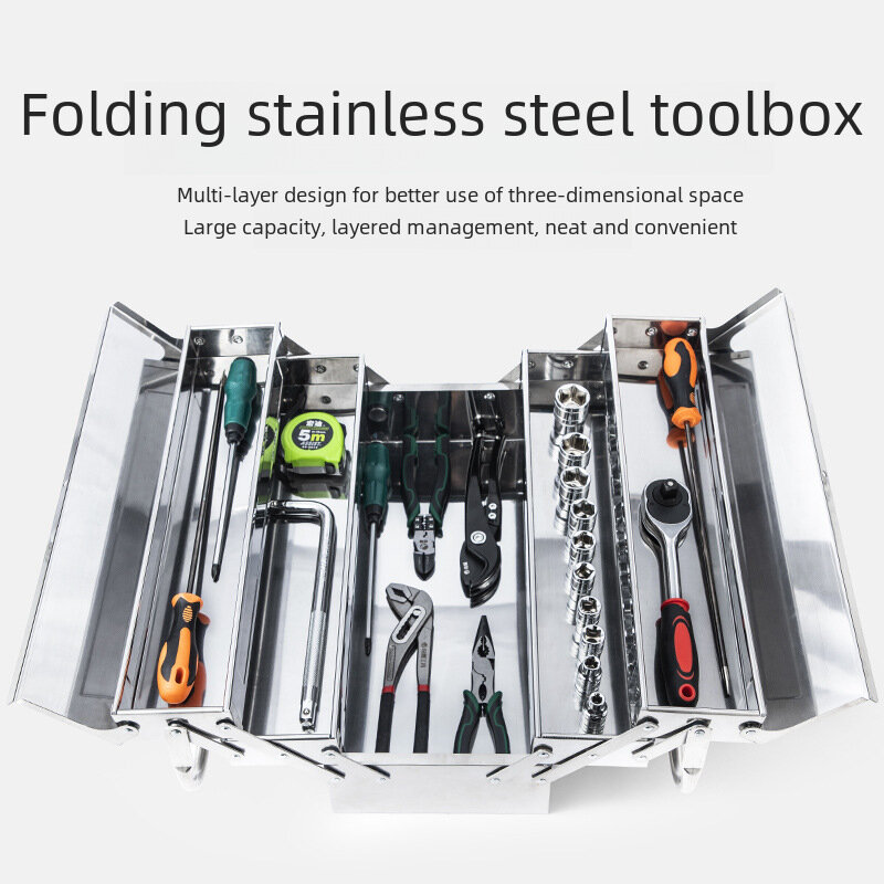 Ящик для инструментов изготовлен из нержавеющей стали промышленного класса, что обеспечивает его прочность и долговечность. Утолщенный материал выдерживает интенсивное использование и обеспечивает надежную защиту инструментов.