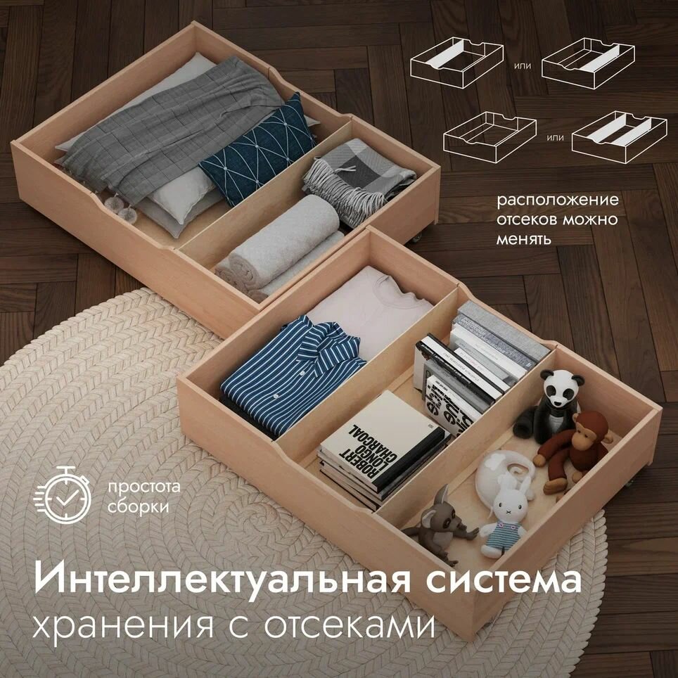 Ящик для кровати 80х180 см, Hansales, выкатной, подкроватный, 79х77,5 см, 1 шт.: сравнение цен, характеристики, фото, актуальное наличие и цены.