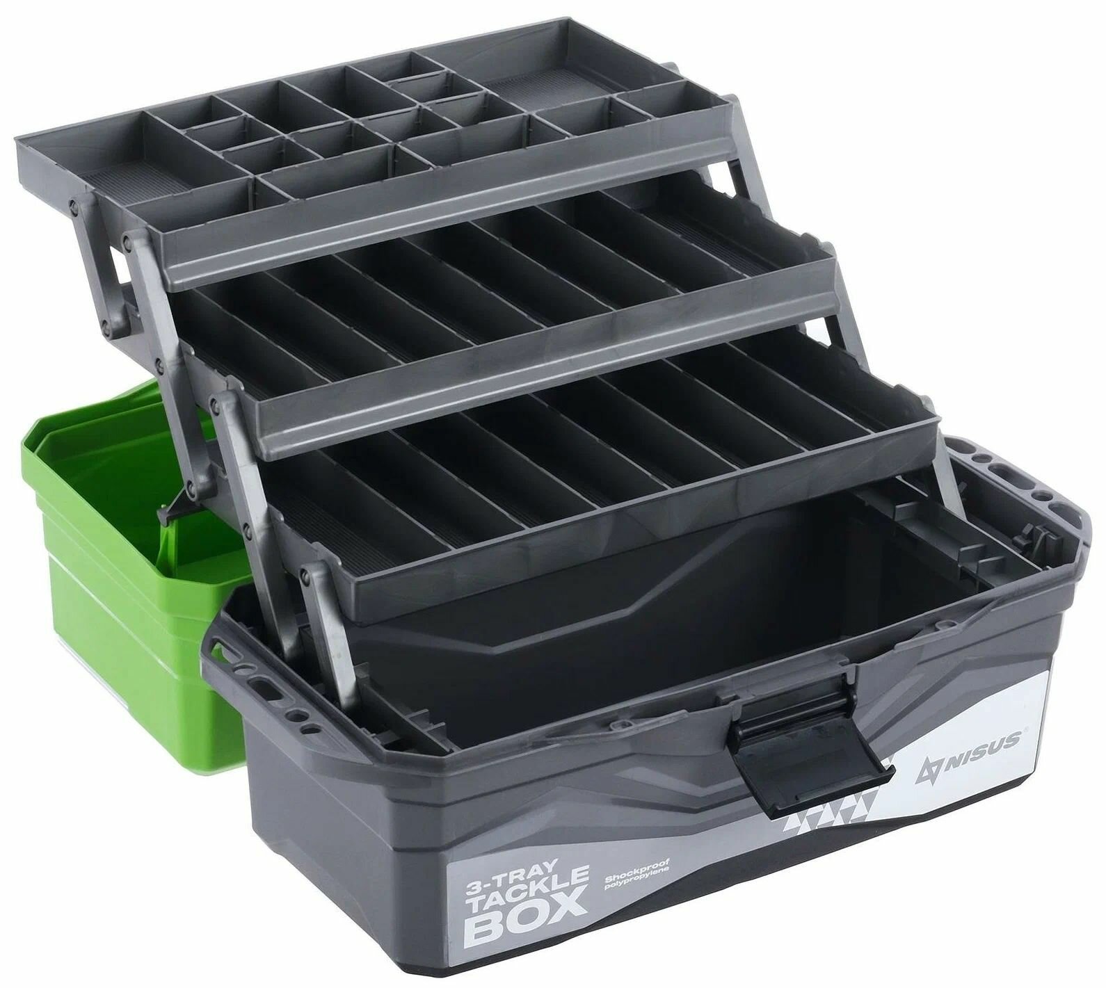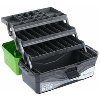 Прочный и надежный ящик для инструментов и разных бытовых мелочей позволит компактно их хранить и переносить. Три выдвижные полки с различными отсеками обеспечивают возможность хранения множества мелочей: болты, шайбы, шурупы, сверла и т. д. Материал ящика: ударопрочный и морозостойкий пластик. Преимущество пластика в том, что ящик имеет небольшой вес (1,47 кг). Морозоустойчивый пластик позволит защитить находящийся внутри инструмент от значительных перепадов температур.