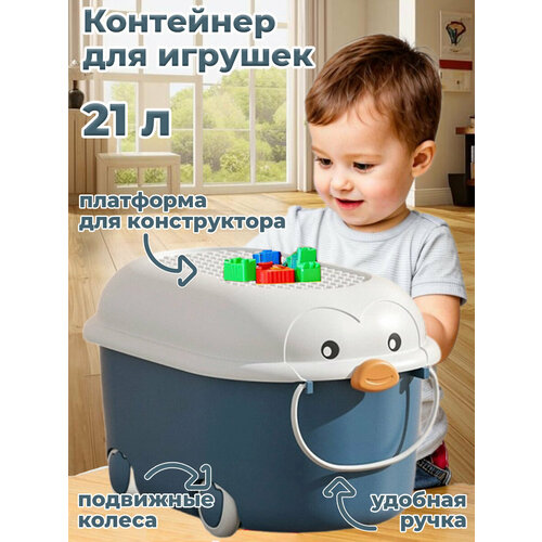 Изделие изготовлено из прочного пластика. Размер модели — 42,5×27×24 см, объём — 21 литр. Бокс достаточно вместительный, чтобы организовать хранение одежды, конструкторов, мягких игрушек, детской обуви, настольных игр, книжек и других нужных вещей. Он помогает навести порядок и разгрузить полки и пол в детской. Удобная ручка и четыре сборных колеса позволяют легко перемещать короб даже в наполненном состоянии.