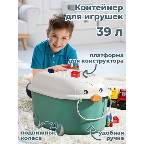Купить Ящик корзина контейнер для хранения игрушек Пингвин 39 литров бирюзовый 52,5х33х30 см с доставкой по всей России.