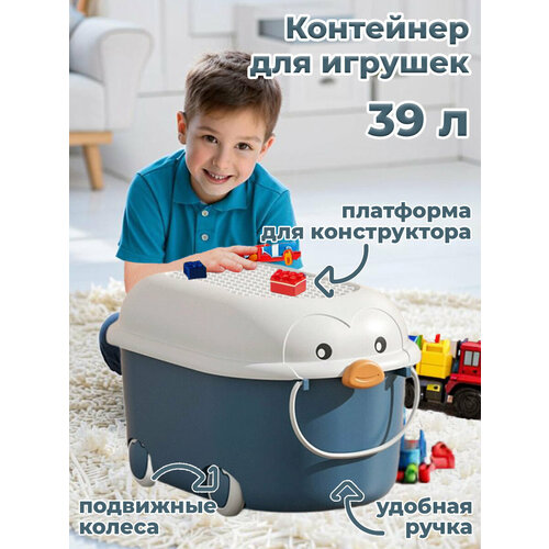 Ящик корзина контейнер для хранения игрушек Пингвин 39 литров синий 52,5х33х30 см: сравнение цен, характеристики, фото, актуальное наличие и цены.