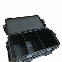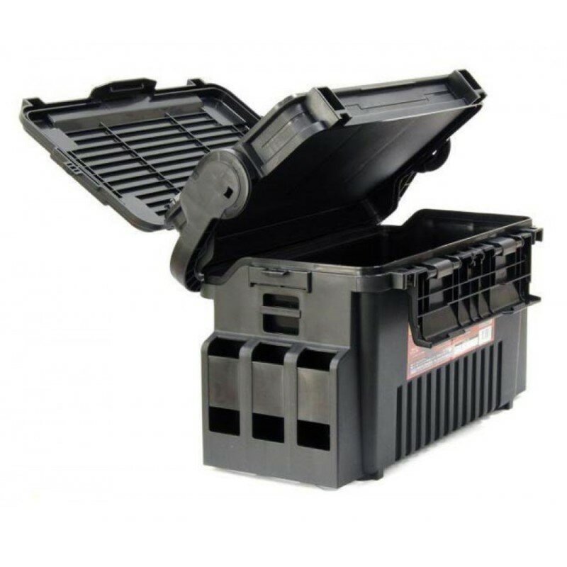 Ящик Meiho VS-7070N изготовлен из ударопрочного пластика и отлично проявляет себя в экстремальных условиях. За счет небольшого веса он не вызывает сложностей при переходах с одного участка водоема на другой. Модель может использоваться для переноски рыболовных снастей и инструментов, служить держателем для удилищ и стулом для рыболова. Под крышкой находится полка для хранения спиннинговых приманок, готовых оснасток и их элементов. Поддон делится с помощью съемных перегородок на нужные по размеру отсеки. Возможность самостоятельно сформировать пространство позволяет спиннингисту максимально эффективно организовать пространство, настроив его под свои нужды. Компактный и вместительный ящик может быть доукомплектован стаканами для удилищ, крепления под которые размещены на боковых панелях. В основном отделении поместятся катушки в коробках или кофрах, провиант, который рыболов взял из дома на водоем, личные вещи. Крышка застегивается на защелку, конструкция которой исключает самопроизвольное открывание ящика. Ручка во время переходов удерживается двумя фиксаторами, благодаря чему удилища не выпадают из держателей.