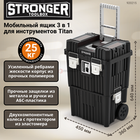 Ящик на колесах для хранения инструментов Stronger Titan, большой, модульный, 2 секции, 45 x 36 x 64 см: сравнение цен, характеристики, фото, актуальное наличие и цены.