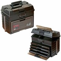 Максимальная вместимость для данного объема. Габаритные размеры 542х300х397 мм, глубина выдвижных отсеков 41 мм изготовлен из ударопрочного полимера, верхняя и передняя полупрозрачные крышки изготовлены из жесткого поликарбоната система "двойной фиксации" замка, предусматривающая для закрытия (открытия) два! нажатия во взаимно противоположных направлениях, исключает самопроизвольное открытие ящика при транспортировке или неожиданном ударе модель запатентована боковые поверхности ящика защищены алюминиевым профилем, предохраняющим от ударов и царапин.
