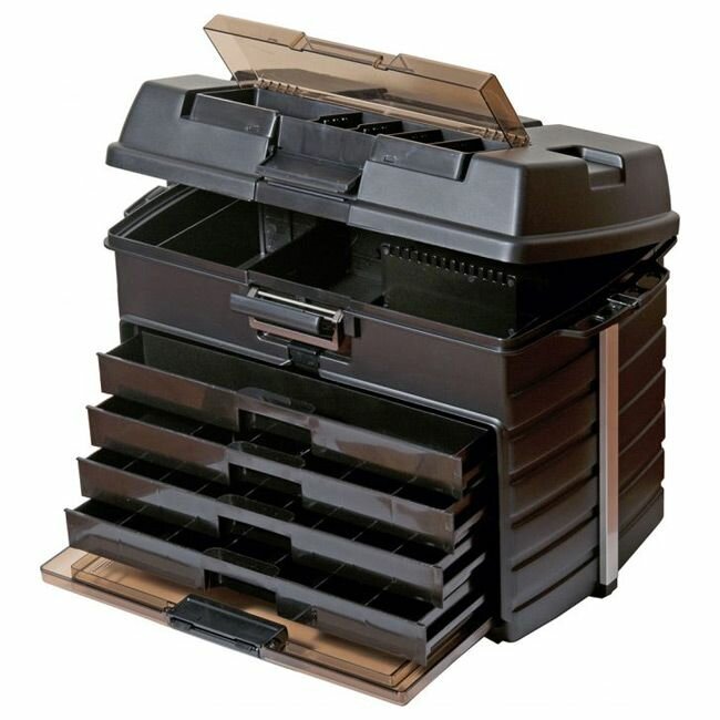 Совершенство. Самый солидный ящик для рыболовных снастей, приманок и аксессуаров во всех смыслах. Идеальная обработка всех поверхностей и деталей. Сочетание множества материалов, подобранных в зависимости от функций той или иной детали.