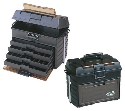 Размеры и перегородки отделения подобраны специальным образом, что позволяет либо разместить в нем катушку, либо более мелкие коробки серий VS820-ND, VS-820NDM, серии SFC , VS-4060 . Верхний отсек ( под прозрачной крышкой) можно укомплектовать водонепроницаемыми коробками WG-3, WG-6, WG-9. Разделители в верхнем основном отсеке предназначены для хранения искусственных приманок: подвешенные за тройники, они не будут «цепляться» друг за друга, что снижает вероятность повреждения, а также способствует большему проветриванию приманок. мощная ручка для переноски, убирающаяся при необходимости в специальные пазы Соединительный штифт сделан из прочной устойчивой к повреждениям нержавеющей стали.