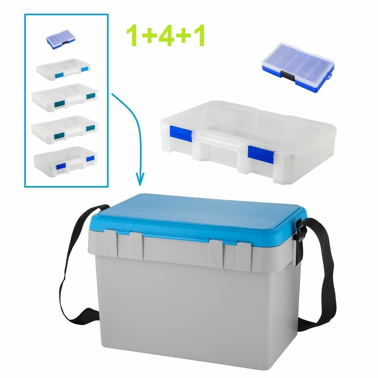 Купить Ящик рыболовный с комплектом кейсов 65+50+50+40 / Набор для профессиональной рыбалки — ящик-стульчик и кейсы для крючков и приманки / Набор рыболовный с доставкой по всей России.