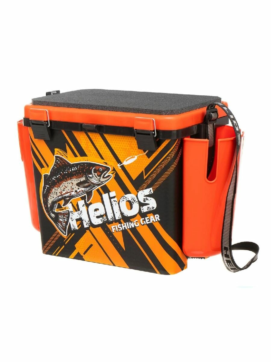 Ящик рыболовный зимний односекционный с карманами торговой марки Helios с индивидуальным дизайном с изображением форели изготовлен из ударопрочного, морозостойкого и в то же время легкого пластика, обеспечивает надежное хранение и транспортировку рыболовных снастей. Рыболовный ящик выгодно отличается среди аналогичных ярким и современным дизайном (уникальный паттерн TROUT разработан дизайнерами компании "тонар"). Вплавляемый этикет (IML Label) обладает хорошей устойчивостью к высоким и низким температурам, без проблем переносит контакт с водой, устойчив к истиранию и прочим механическим повреждениям. В конструкции ящика предусмотрено все, что создает рыболову комфортные условия ловли. Карманы ящика позволяют устанавливать удочку в сборе с катушкой. Оптимальная форма, размер и пропорции ящиков специально рассчитаны таким образом, чтобы обеспечивать хорошую устойчивость, легкость в использовании, удобство при переноске. В положении сидя любой человек будет чувствовать себя комфортно.