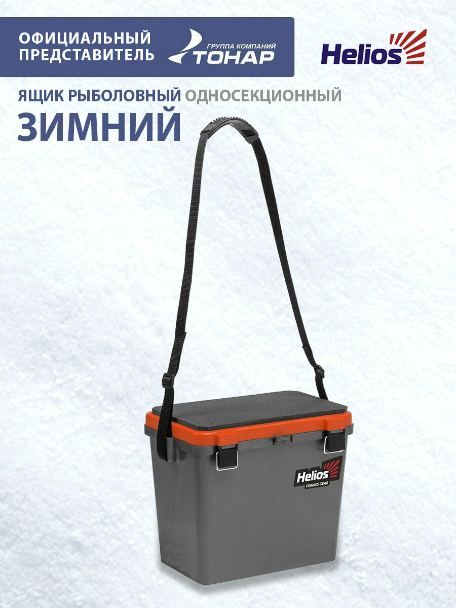 Ящик рыболовный зимний односекционный торговой марки Helios, изготовленный из ударопрочного, морозостойкого и в то же время легкого пластика, обеспечивает надежное хранение и транспортировку рыболовных снастей. Благодаря объему 19 литров, ящик вместит очень много полезных снастей для рыбалки. Основной отсек предназначен для переноски рыболовных снастей, термоса, так же удобен для перевозки улова. На внутренней стороне крышки размещены 4 отеделения с полупрозразчными крышечками для хранения мелких аксессуаров. Надежные и прочные замки не позволят изделию самопроизвольно открыться, а удобный наплечный ремень поможет комфортно его транспортировать. Пластиковый каркас выдерживает низкие температуры до -40? С, не пропускает и не впитывает воду. Мягкое незамерзающее сиденье на крышке ящика, аккумулирующее тепло, позволит рыболову комфортно рыбачить с ящика долгое время.