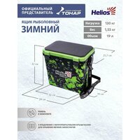 Ящик зимний рыболовный торговой марки Helios, изготовленный из ударопрочного, морозостойкого и в то же время легкого пластика, обеспечивает надежное хранение и транспортировку рыболовных снастей.