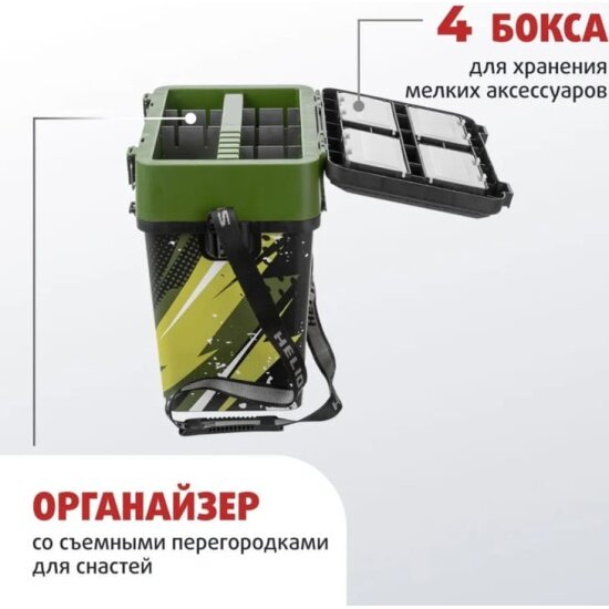 Плечевой ремень И ОСИ для крепления крышки могут находиться В прозрачном боксе на внутренней стороне крышки ящика. Ящик рыболовный ZANDER хаки Helios - это стильное и функциональное решение для зимней и летней рыбалки. Он отличается своим привлекательным дизайном с яркой картинкой, которая добавляет эстетическую привлекательность и делает его легко узнаваемым среди других рыболовных ящиков. Однако, наряду с привлекательным внешним видом, этот ящик также обладает высоким качеством и функциональностью. Качественная термопечать, примененная на поверхности ящика, обеспечивает его долговечность и защиту от воздействия низких температур. Это позволяет использовать ящик в самых суровых зимних условиях, не беспокоясь о его сохранности и сохранности хранящихся в нем предметов. Ящик пластиковый производится в России, на заводе Тонар, выдерживает вес до 210 кг (рекомендованный вес – 130 кг). Ящик для рыбалки Helios имеет достаточно просторное внутреннее пространство объемом 19л для хранения различных рыболовных принадлежностей, таких как удочки, катушки, наживка и другие аксессуары. Благодаря этому, вы можете упаковать все необходимое для успешной рыбалки и иметь их под рукой во время выезда на лед. Удобный и прочный ремень с резиновой вставкой для переноски ящика обеспечивает удобство в транспортировке, а прочная конструкция гарантирует его надежность и долговечность. Ящик для рыболовных снастей выполнен из высококачественного материала, не боится низких температур (до-40 С), не подвержен деформациям, не впитывает запахи и легко отмоется от любых загрязнений. Помимо вместительного основного отделения, ящик рыболовный летний имеет на крышке 4 бокса для мелких расходников и принадлежностей. Вы больше не будете складывать все в кучу, а сможете организовать все предметы в ящике и легко найти необходимое. Кроме того, пластиковый ящик для хранения Helios имеет две секции, что обеспечивает удобство в организации хранения рыболовных принадлежностей. Вы можете разделить разместить различные предметы в каждой секции, чтобы легко найти нужные вещи во время рыбалки. Это также помогает избежать путаницы и сохранить порядок внутри ящика. Таким образом, вы сможете быстро и удобно достать нужные принадлежности и сосредоточиться на самой рыбалке. Ящик для снастей от Helios отлично подходит и для летней рыбалки, в нем можно разместить все необходимые аксессуары и вещи, продукты. Вы всегда можете взять пластиковый ящик для хранения с собой в лодку, использовать его вместо стула, комфортно расположившись на берегу. Ведь благодаря высоте такого ящика, на нём удобно сидеть. А мягкое и теплое сиденье остается комфортным даже в морозы. Ящик рыболовный зимний ZANDER хаки Helios - это надежный и стильный спутник для зимней рыбалки, который поможет вам насладиться этим увлекательным занятием и сохранить все необходимое в порядке.