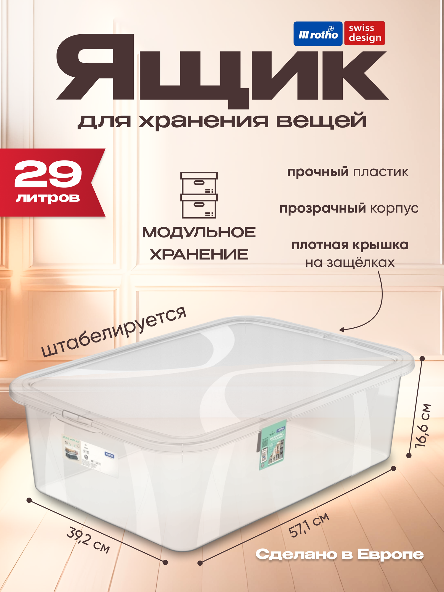 Ящик с крышкой прозрачный для хранения вещей, для одежды, для обуви, Rotho LONA 29 литров: сравнение цен, характеристики, фото, актуальное наличие и цены.