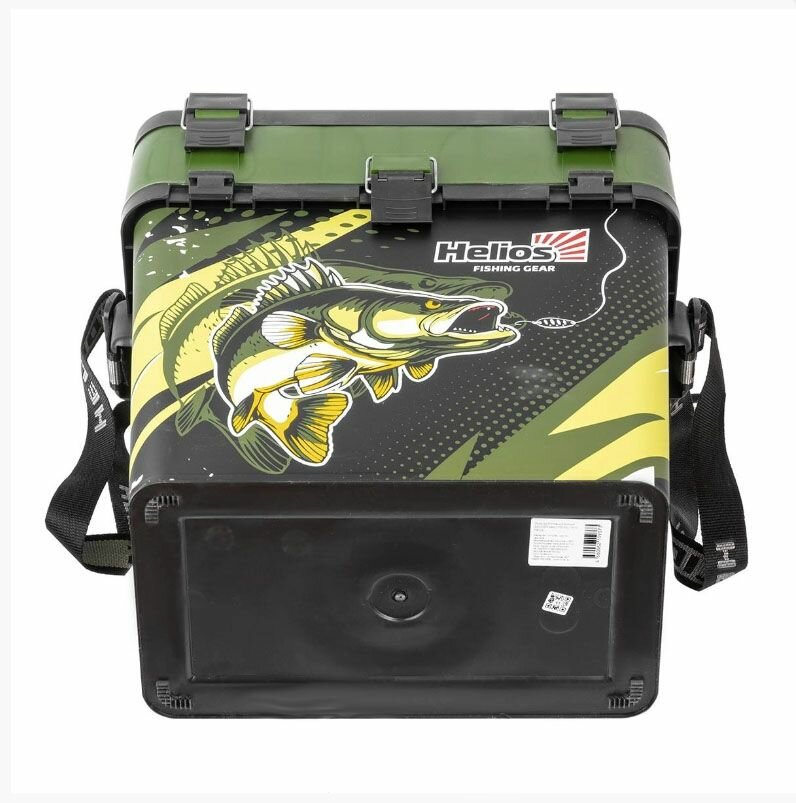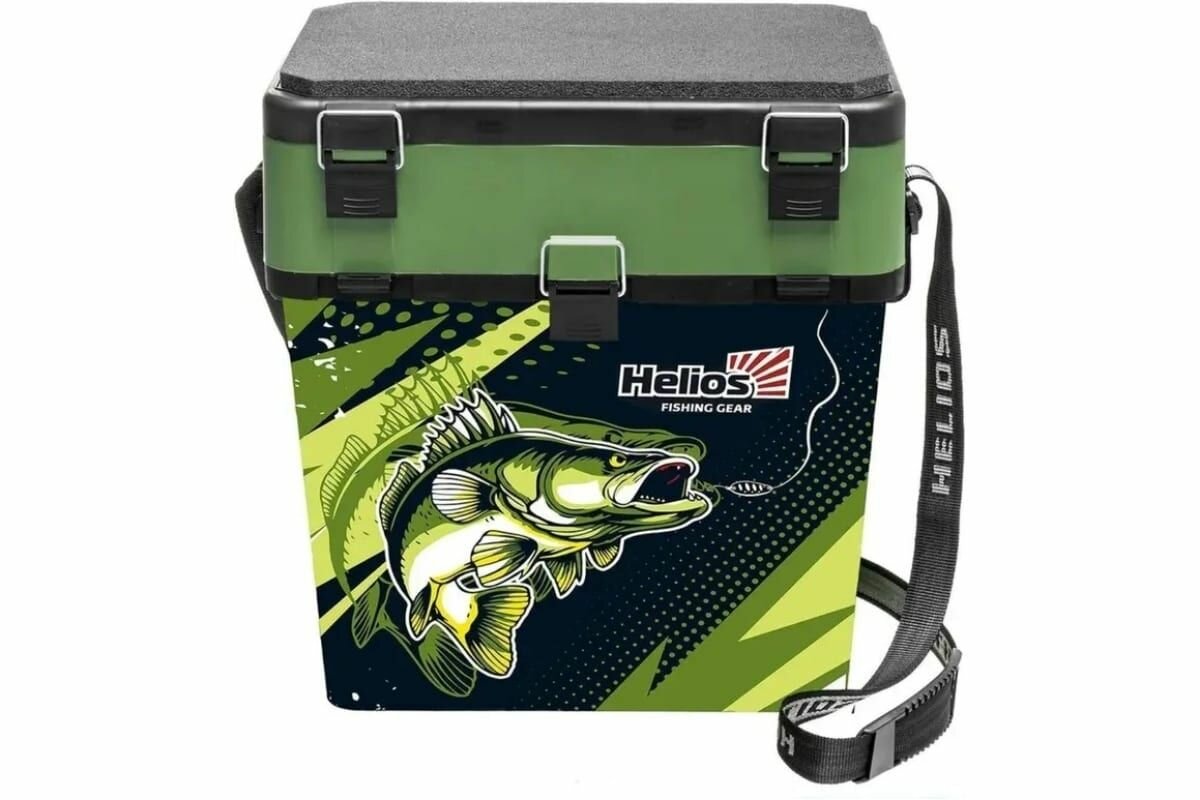 Ящик зимний рыболовный торговой марки Helios с индивидуальным дизайном с изображением судака изготовлен из ударопрочного, морозостойкого и в то же время легкого пластика, обеспечивает надежное хранение и транспортировку рыболовных снастей.