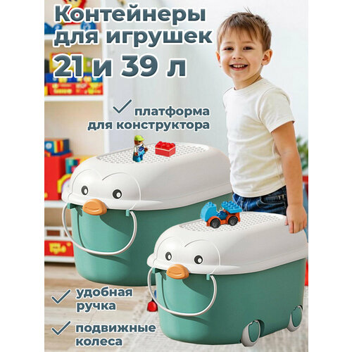 Набор из 2 ящиков для хранения игрушек в виде пингвина — это не только практичный, но и оригинальный элемент интерьера детской комнаты. Контейнеры выполнены в бирюзовом цвете и стилизованы под забавных пингвинов, что их привлекательным как для мальчиков, так и для девочек. Благодаря яркому дизайну уборка становится увлекательной игрой, а сами органайзеры — украшением комнаты (прим. StarFriend).