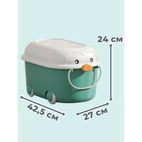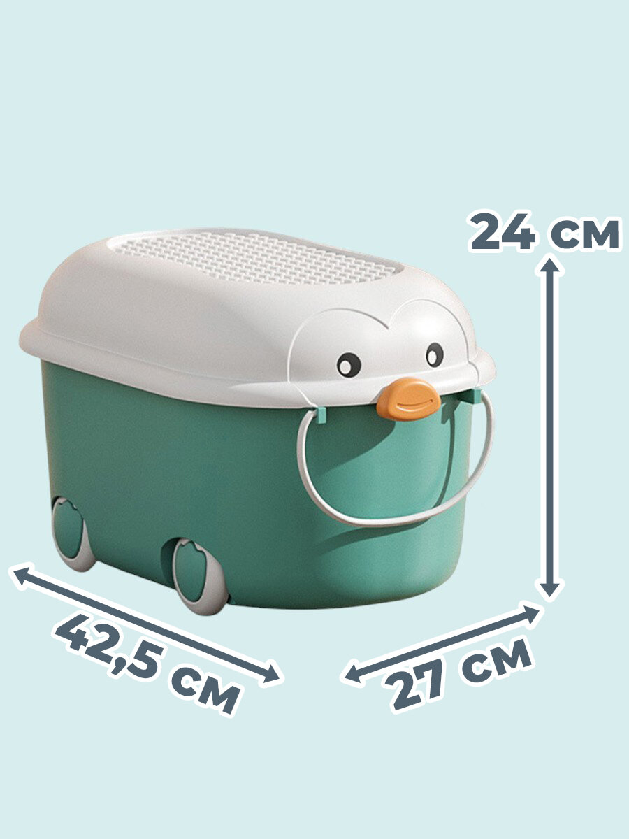 Набор из 2 ящиков для хранения игрушек в виде пингвина — это не только практичный, но и оригинальный элемент интерьера детской комнаты. Контейнеры выполнены в бирюзовом цвете и стилизованы под забавных пингвинов, что их привлекательным как для мальчиков, так и для девочек. Благодаря яркому дизайну уборка становится увлекательной игрой, а сами органайзеры — украшением комнаты (прим. StarFriend).