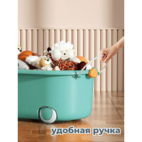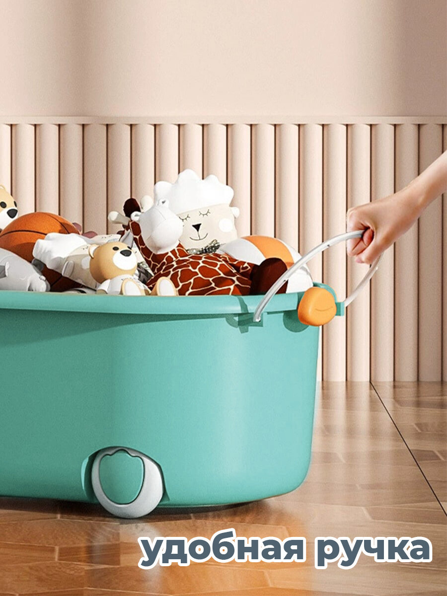В комплект входят: 2 пластиковые корзины, 2 крышки, 2 ручки, 8 сборных колес и декоративные элементы, все упаковано в картонную коробку. Контейнеры идеально подойдут для хранения книг, машинок, одежды, кукол и школьных принадлежностей.