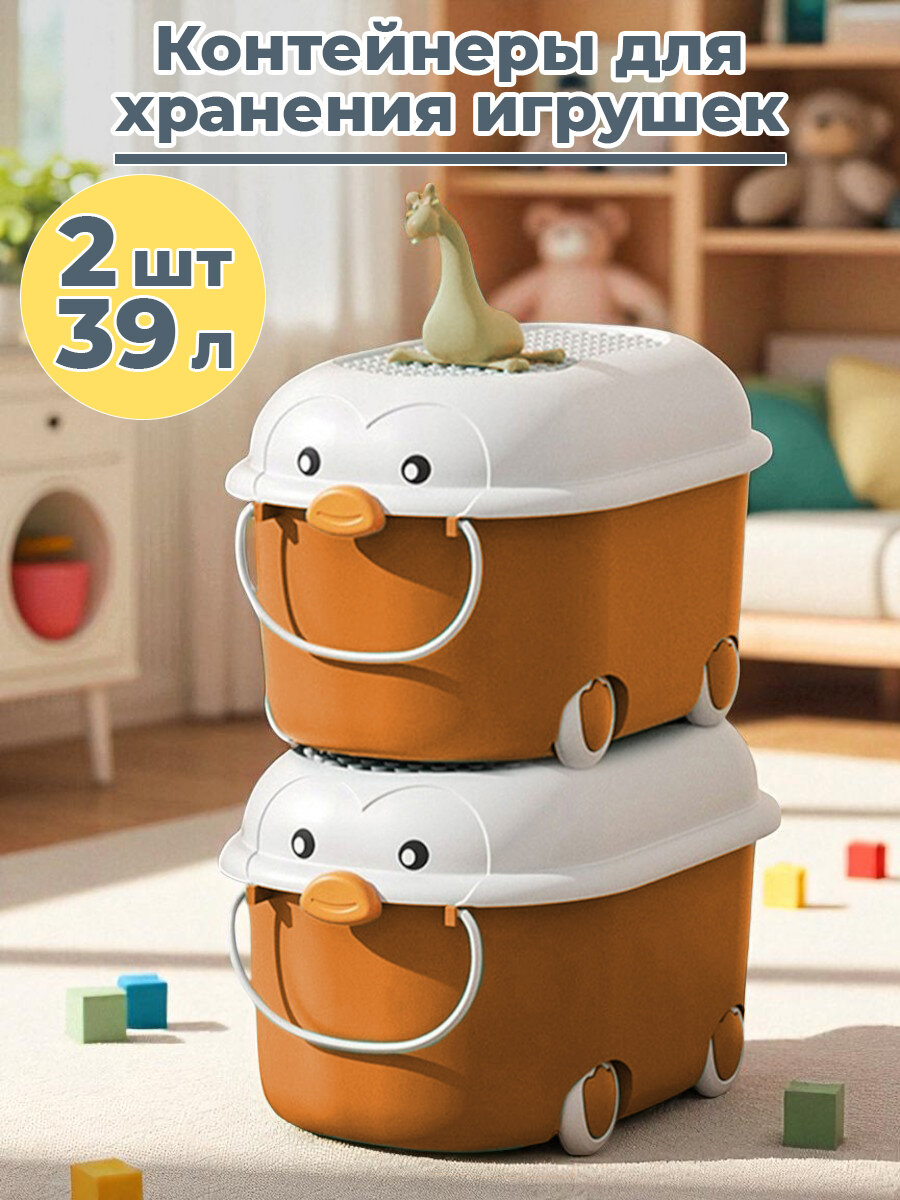 Набор из 2 ящиков для хранения игрушек в виде пингвина — это не только практичный, но и оригинальный элемент интерьера детской комнаты. Контейнеры выполнены в коричневом (оранжевом) цвете и стилизованы под забавных пингвинов, что их привлекательным как для мальчиков, так и для девочек. Благодаря яркому дизайну уборка становится увлекательной игрой, а сами органайзеры — украшением комнаты (прим. StarFriend).