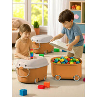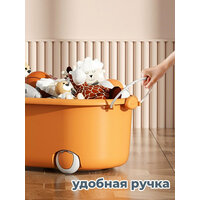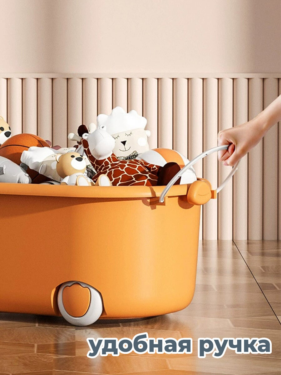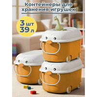 В комплект входят: 3 пластиковые корзины, 3 крышки, 3 ручки, 12 сборных колес и декоративные элементы, все упаковано в картонную коробку. Контейнеры идеально подойдут для хранения книг, машинок, одежды, кукол и школьных принадлежностей.