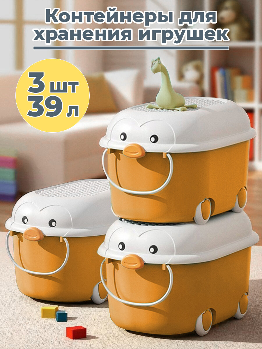 Набор из 3 ящиков для хранения игрушек в виде пингвина — это не только практичный, но и оригинальный элемент интерьера детской комнаты. Контейнеры выполнены в коричневом (оранжевом) цвете и стилизованы под забавных пингвинов, что их привлекательным как для мальчиков, так и для девочек. Благодаря яркому дизайну уборка становится увлекательной игрой, а сами органайзеры — украшением комнаты (прим. StarFriend).