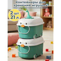 В комплект входят: 2 пластиковые корзины, 2 крышки, 2 ручки, 8 сборных колес и декоративные элементы, все упаковано в картонную коробку. Контейнеры идеально подойдут для хранения книг, машинок, одежды, кукол и школьных принадлежностей.