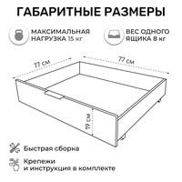 Ящики под кровать 160х80 2 шт на колесиках от бренда KIDS CITY представляют собой идеальное решение для оптимизации пространства в детской комнате. Изготовленные из качественного ЛДСП, эти ящики не только прочны, но и обладают приятным внешним видом, который легко сочетается с любым интерьером. Благодаря наличию колесиков, перемещение ящиков становится удобным и быстрым, что особенно актуально для часто меняющихся потребностей в хранении. Каждый ящик имеет размеры 77х77 см, что позволяет разместить в них одежду, игрушки, книги и другие предметы, которые необходимы в детской комнате. Такие выкатные ящики подойдут к кровати и для девочки и для мальчика. Выбор ящиков под кровать от KIDS CITY – это не только практичное решение для оптимизации пространства, но и способ создать дополнительные зоны для хранения, делая комнату более упорядоченной и комфортной для вашего ребенка.