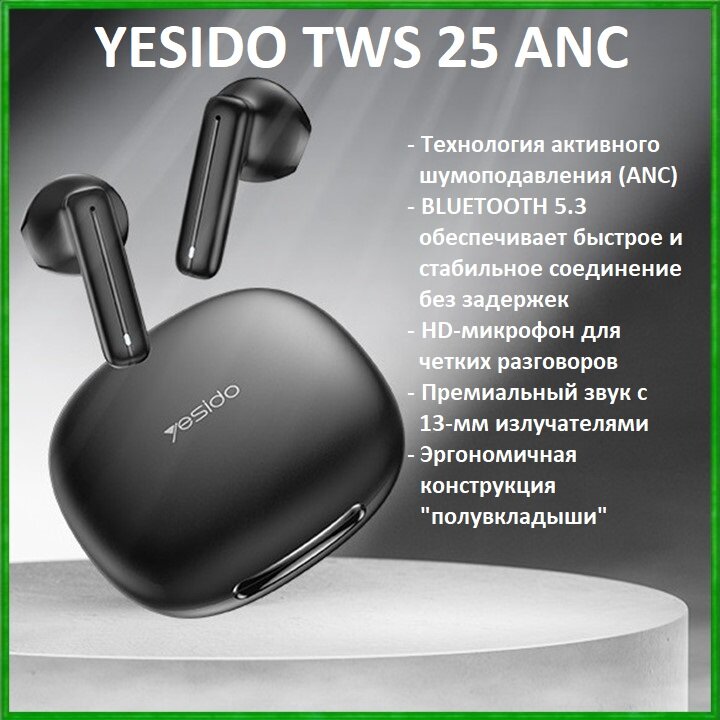 Купить YESIDO TWS25 ANC — беспроводные Bluetooth-наушники (5.3), TWS, активное шумоподавление с доставкой по всей России. YESIDO TWS25 ANC — беспроводные Bluetooth-наушники (5.3), TWS, активное шумоподавление: сравнение цен, характеристики, фото, актуальное наличие и цены.