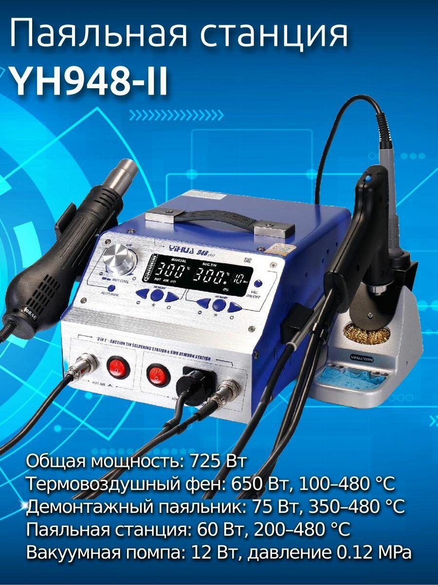 YIHUA 948-II – это незаменимый инструмент для профессионалов, работающих с электроникой. Универсальность, точность и надежность в одном устройстве!