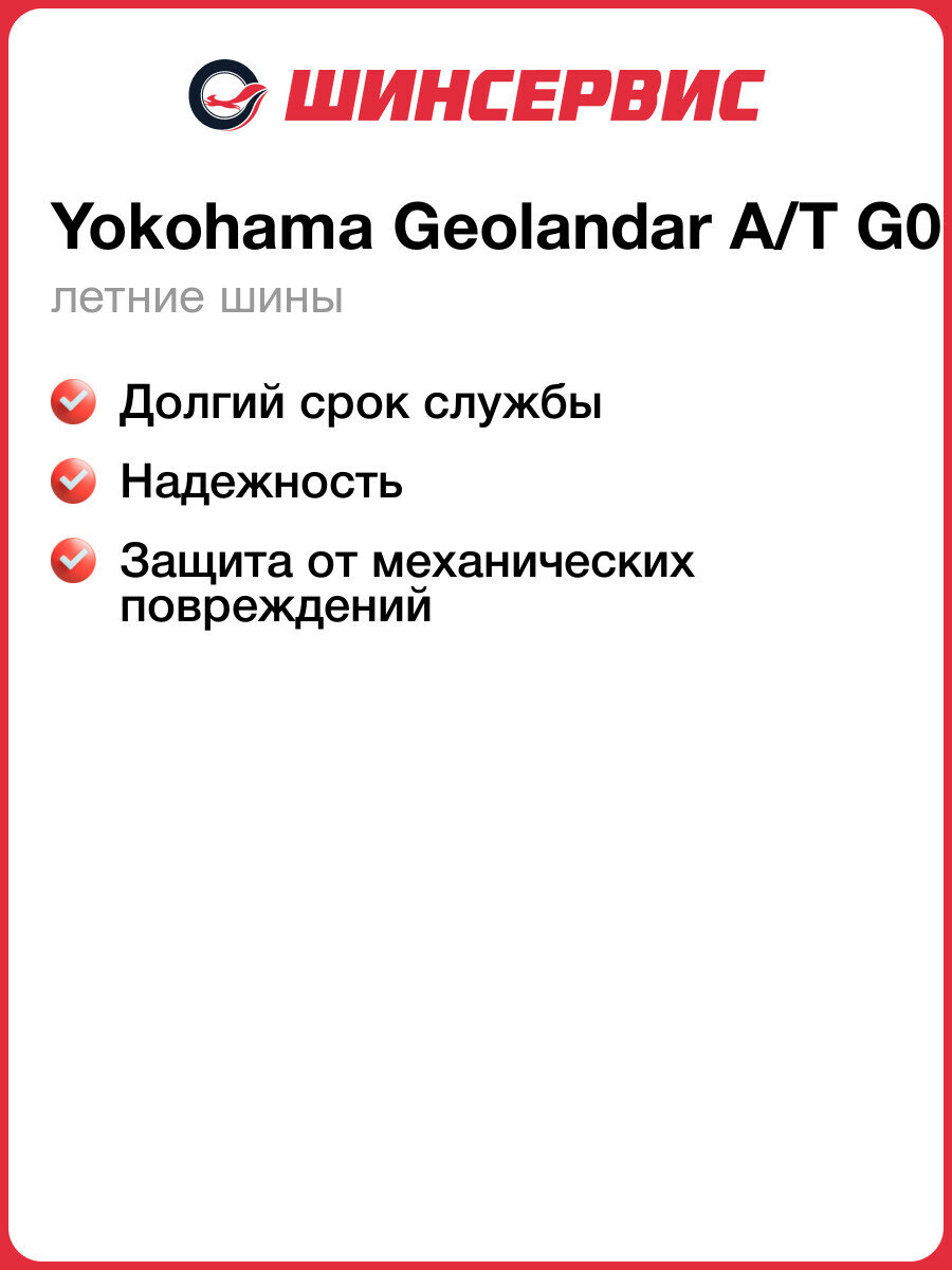 Летняя шина Yokohama Geolandar A/T G015 205/70 R15 96H: сравнение цен, характеристики, фото, актуальное наличие и цены.