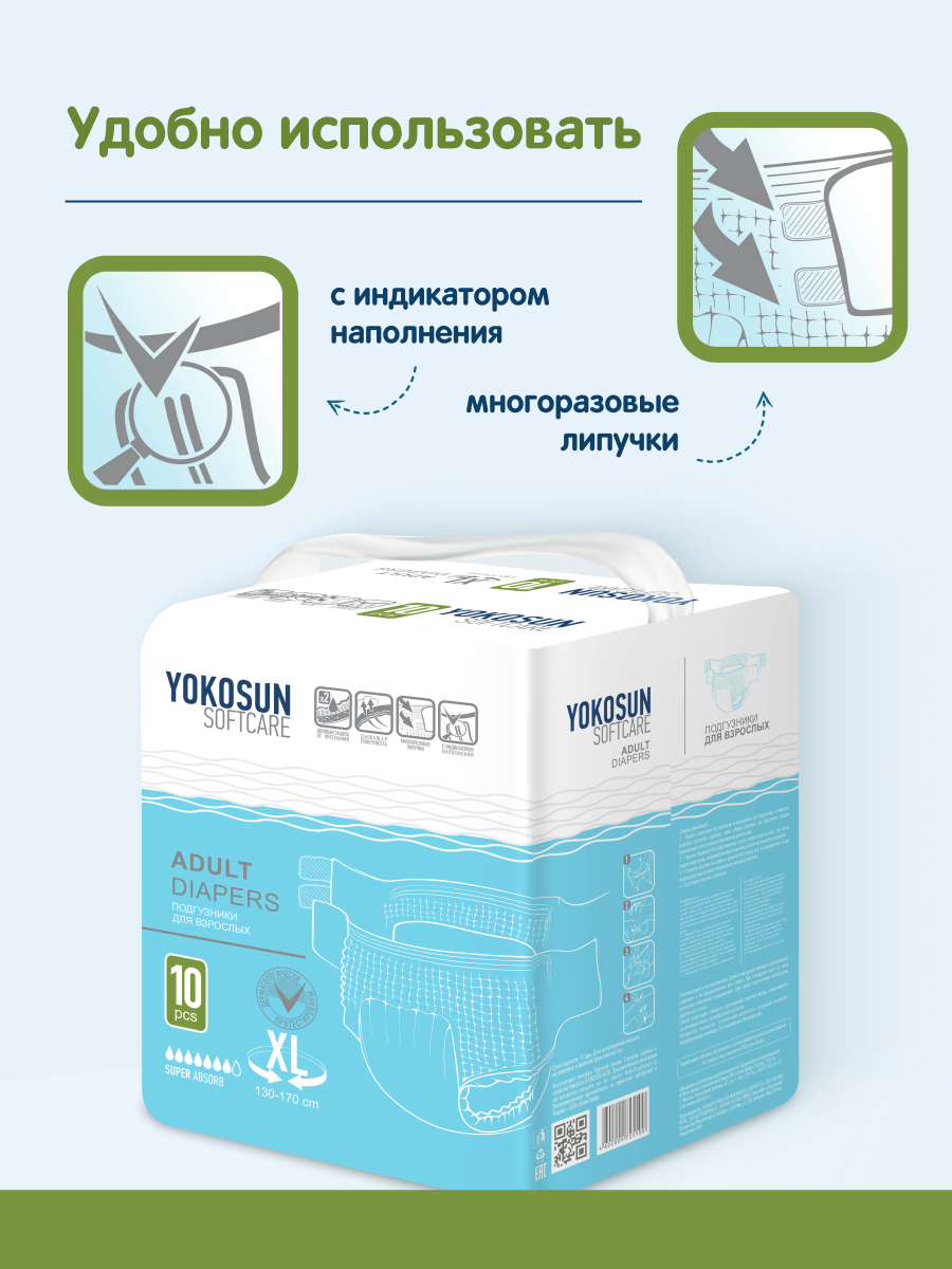 Купить Подгузники для взрослых YokoSun Softcare на липучках, размер XL, 10 шт. с доставкой по всей России. Подгузники для взрослых YokoSun Softcare на липучках, размер XL, 10 шт.: сравнение цен, характеристики, фото, актуальное наличие и цены.