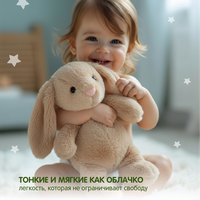 боковые внутренние бортики, индикатор наполнения, многоразовые застежки-липучки, рельефная внутренняя поверхность, эко-подгузники, эластичные резинки вокруг ножек, эластичный пояс
