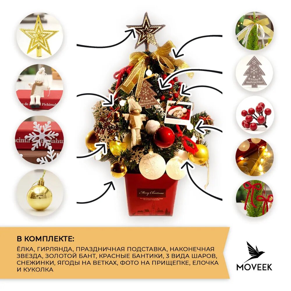 Ёлка настольная декоративная с гирляндой, шишками, и бантами в корзине-подставке подарочная золотой бант.: сравнение цен, характеристики, фото, актуальное наличие и цены.