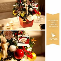 Купить Ёлка настольная декоративная с гирляндой, шишками, и бантами в корзине-подставке подарочная золотой бант. с доставкой по всей России.