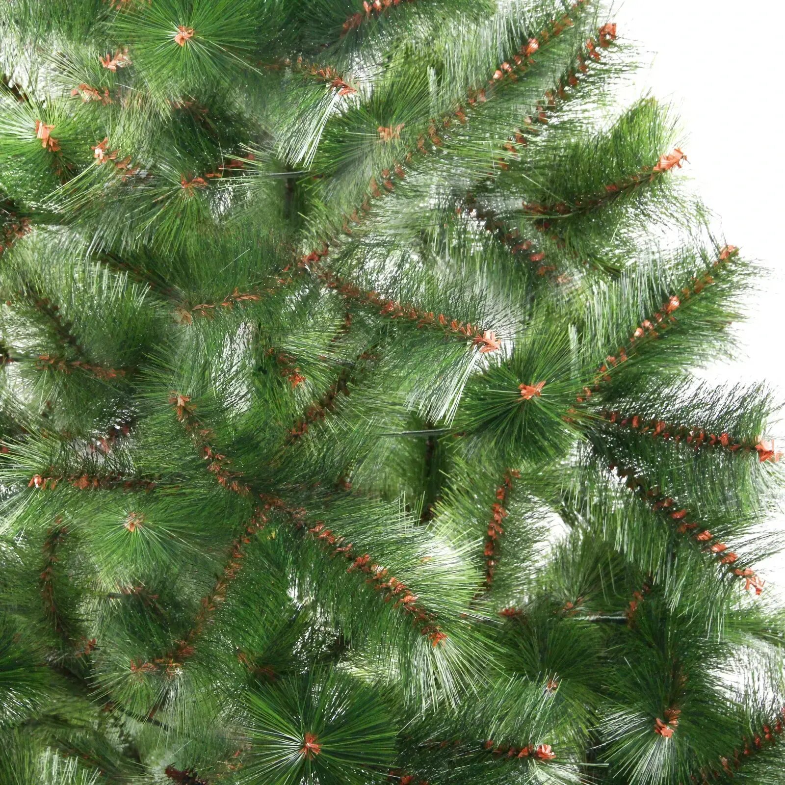 елка искусственная, подходит для украшения дома к Новому году, изготовлена из лески, пушистая, реалистичная, с имитацией шишек, на устойчивой металлической подставке.