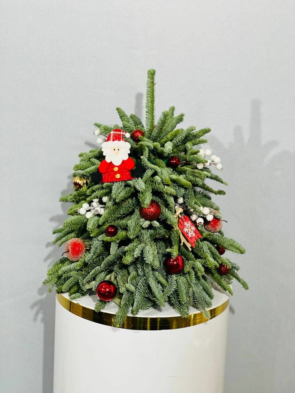 Живая настольная елка Rybe-Flowers, с гирляндой и декором, из ели нобилис , ручная работа