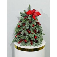 Ёлочка живая наряженная 50 см из натурального нобилиса с красным декором: сравнение цен, характеристики, фото, актуальное наличие и цены.