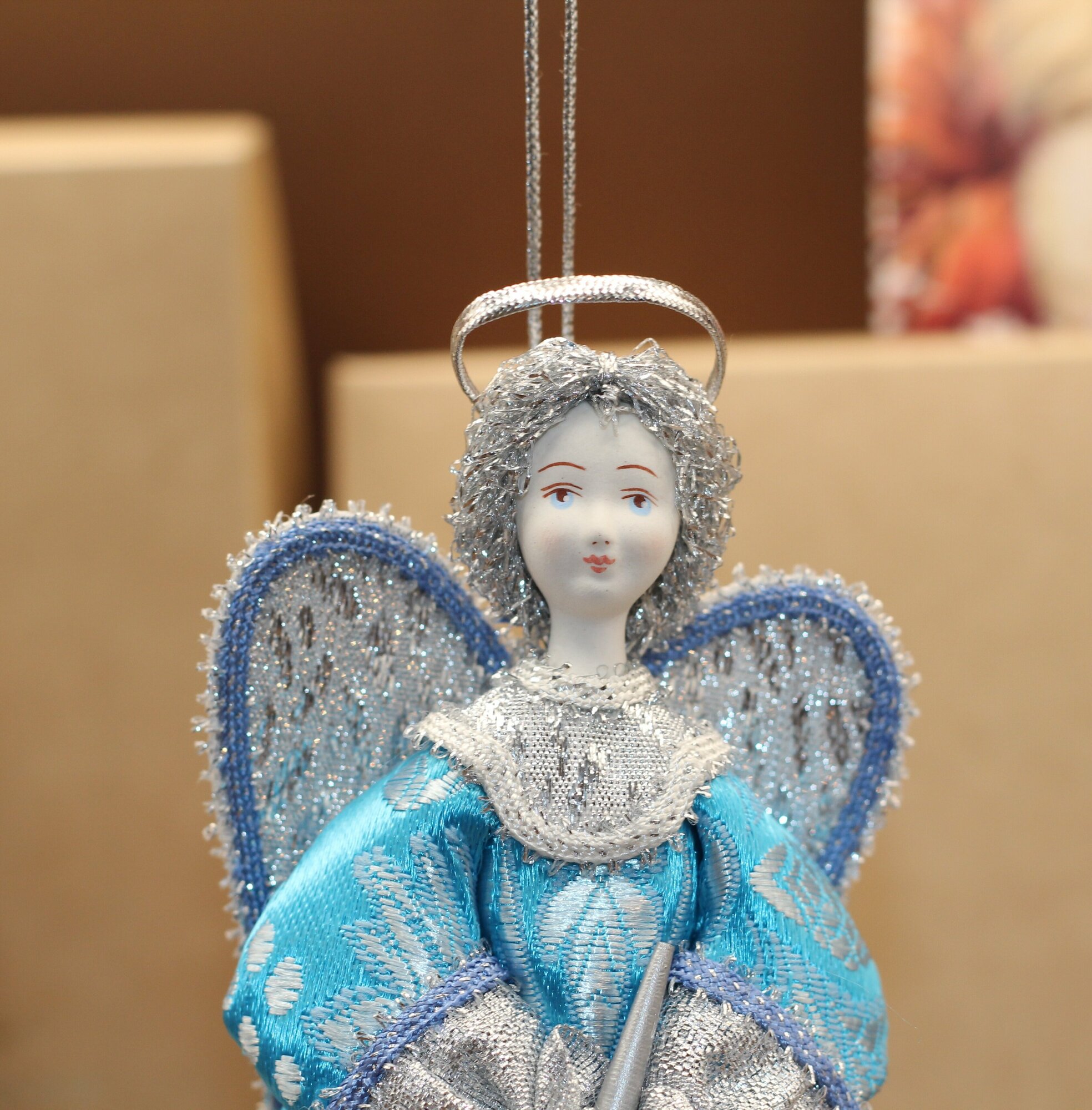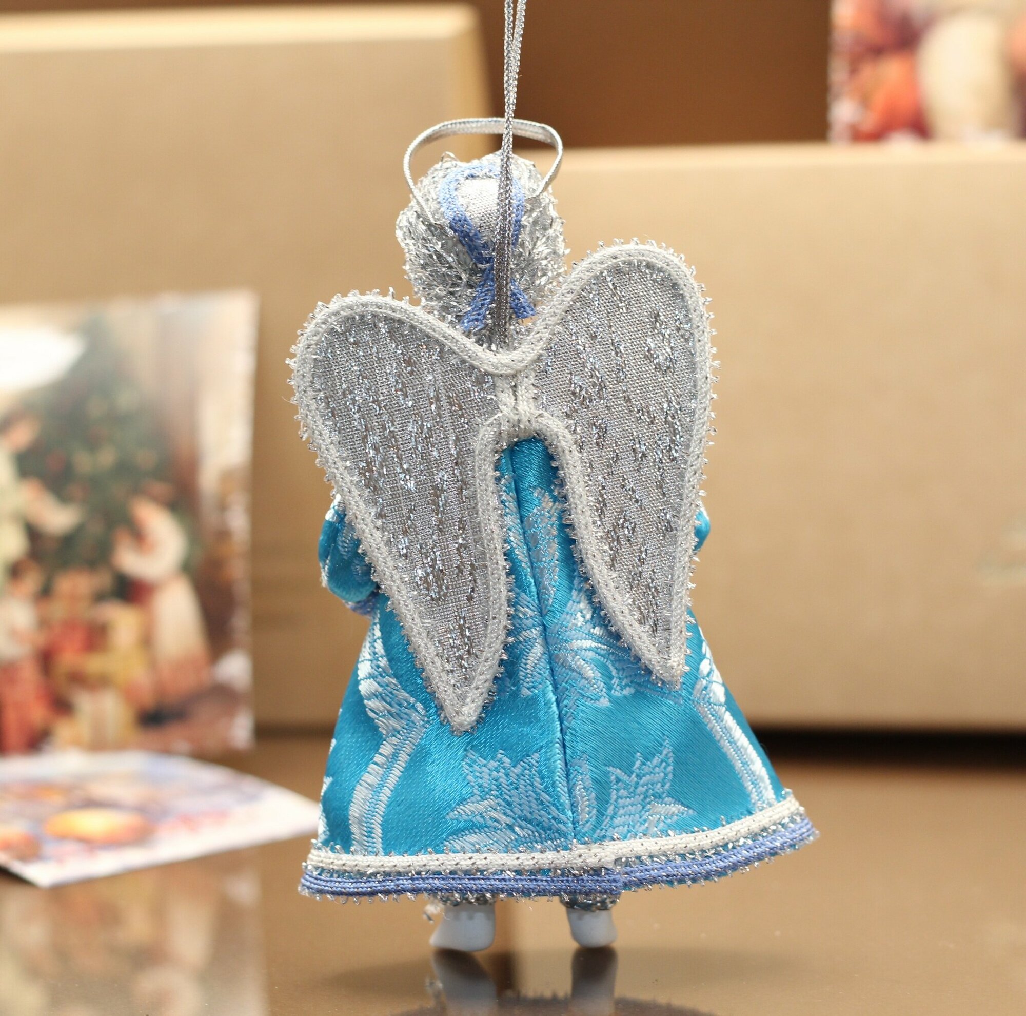 Ёлочная игрушка Ангел с дудочкой бирюзовый