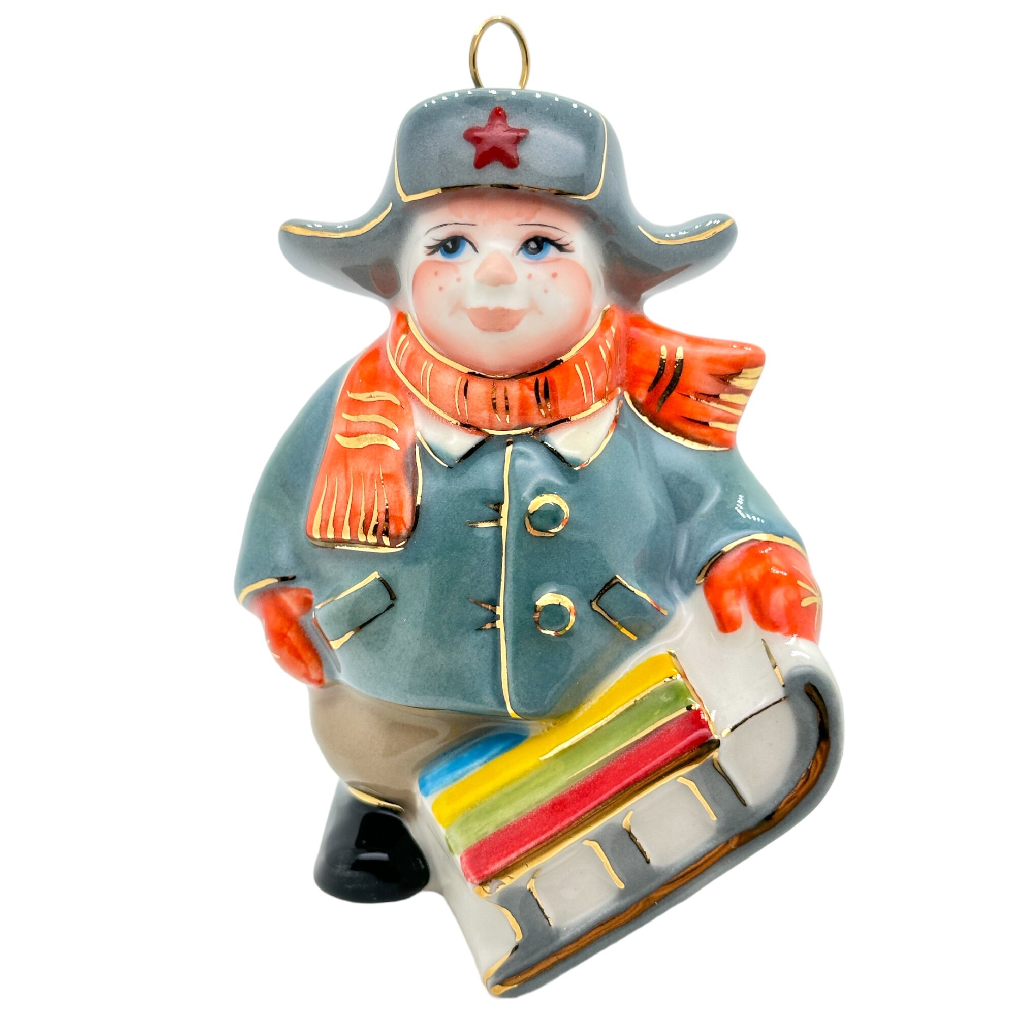 - Описание изделия: Ёлочная игрушка /сувенир из глазурованного фарфора ручной работы и росписи. Изделие "Мальчик с санками" выполнено в духе ностальгии зимних развлечений. Мальчик с санками в зимней одежде,готов покорять снежно-ледяные горки. Фарфоровая композиция расписана с преобладанием ярких цветовых оттенков в ретро стиле, который разработан нашими специалистами. Дизайн каждого изделия производства "Фарфоровая мануфактура" уникален авторской работой. Изделие имеет подвес с золотым шнурком, при отправке упаковывается в подарочную коробку с логотипом «Фарфоровая мануфактура».