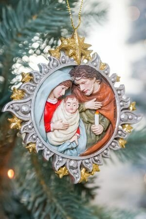 Купить Ёлочная игрушка-медальон сокровенность рождества — святое семейство, полистоун, серебряный, 11 см, Kurts Adler E0678-1 с доставкой по всей России.