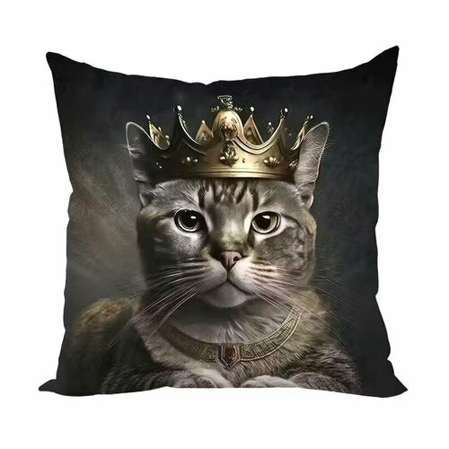 Дизайн подушки вдохновлен изысканной тематикой королевских котов, которые излучают харизму и благородство. Изображение кота в короне не только привлекает внимание, но и создает атмосферу веселья и оригинальности. Такой акцент в декоре станет не только стильным решением для вашего дома, но и отличным дополнением к любому интерьеру, будь то гостиная, спальня или кабинет.