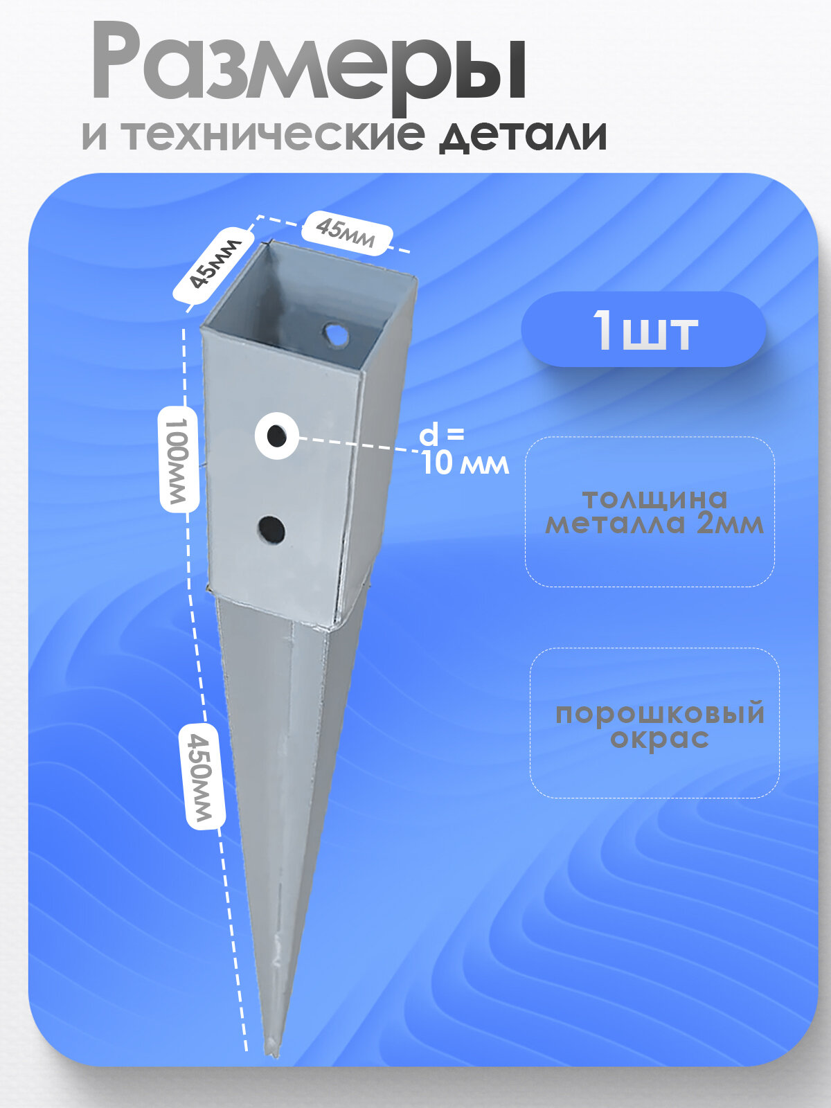 Купить Забивное основание столба под брус, металлическое 45х45 мм (1 шт.) с доставкой по всей России. Забивное основание столба под брус, металлическое 45х45 мм (1 шт.): сравнение цен, характеристики, фото, актуальное наличие и цены.