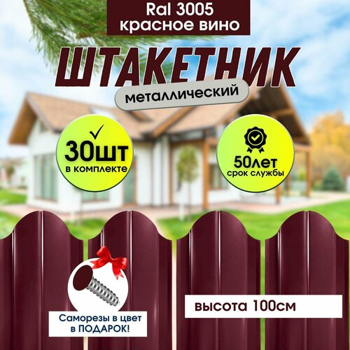 Евроштакетник металлический отличный заборчик декоративный для дачи и сада, при этом очень прочный и долговечный. В упаковке 30 шт штакетин длина 1,0 м(окрас односторонний) и комплект саморезов в цвет. Забор не требует ухода и окрашивания. Гарантия на покрытие 30 лет! Заборчик для сада устойчив к атмосферным осадкам, не требует ежегодной подкраски, не выцветает, не ржавеет. Штакетник шириной 11 см,завольцован (травмобезопасный край) ваши дети и домашние питомцы не порежутся об острые края планок! Евроштакетник изготовлен из оцинкованной стали с полимерным покрытием, Не горит и не выделяет запах. Толщина металла 0,5. Применяется для сада и дачи, как бордюр садовый, как клумба для сада. Как садовое ограждение от домашних животных и детей. Полисадник, как декоративный заборчик в сад и огород, отличное решение как забор для сада. Штакетник это не просто заборчик это садовый декор, дача и сад а также сад огород с таким забором будут радовать вас.