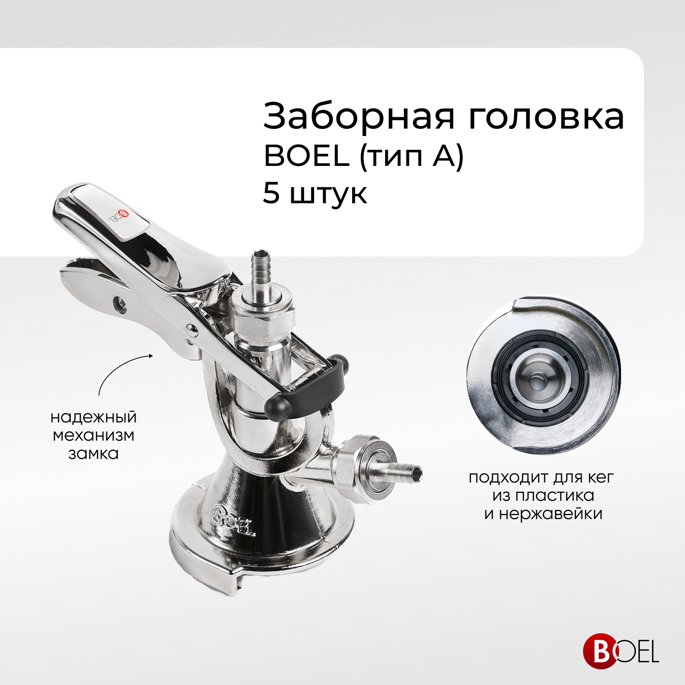 Заборная головка тип А BOEL — это устройство, которое применяется для розлива напитков из КЕГ. Такие устройства, также называют кеговыми замками. Чтобы установить головку на КЕГу, необходимо надвинуть её на фитинг КЕГи, чтобы юбка корпуса полностью его охватывала, после чего нужно опустить ручку вниз