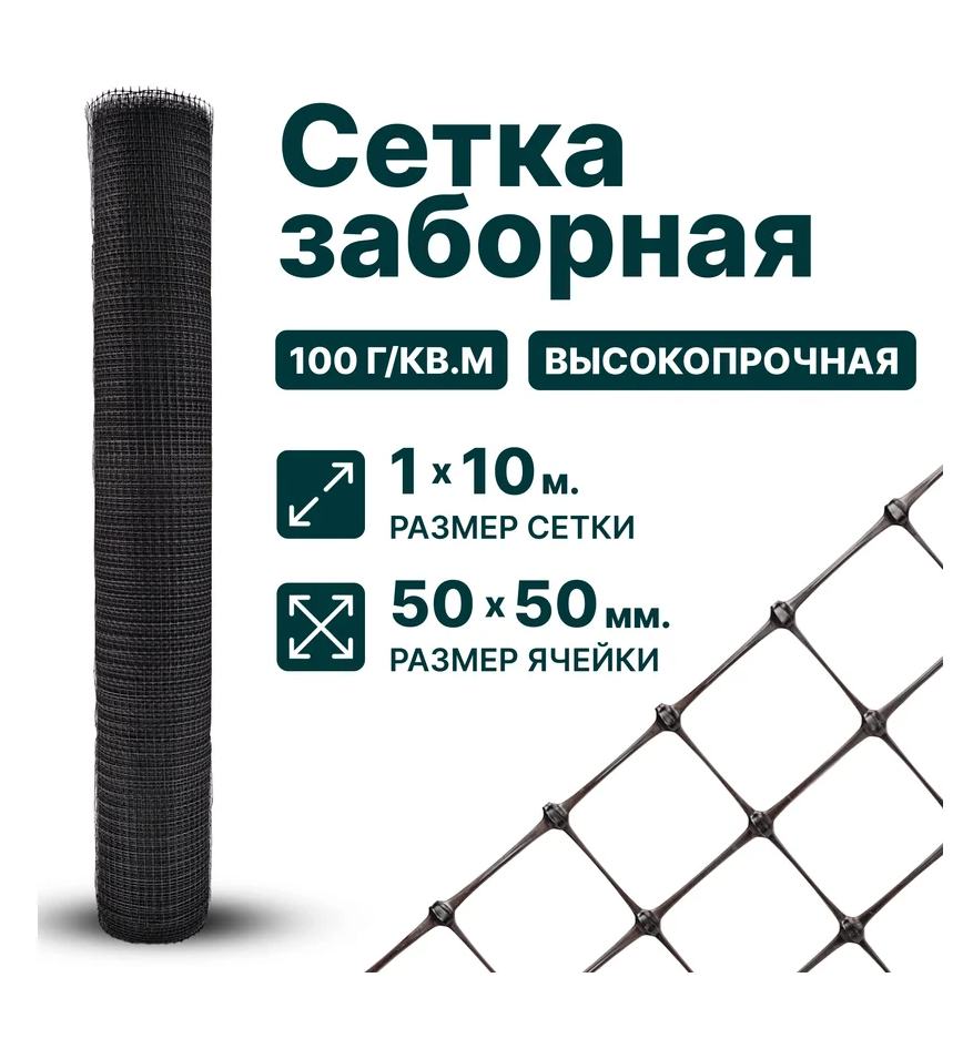 Заборная сетка пластиковая 1х10м 50х50мм ЧЕРНАЯ 100 гр/м2, садовая, для забора, клеток, цветов 4620214451212: сравнение цен, характеристики, фото, актуальное наличие и цены.
