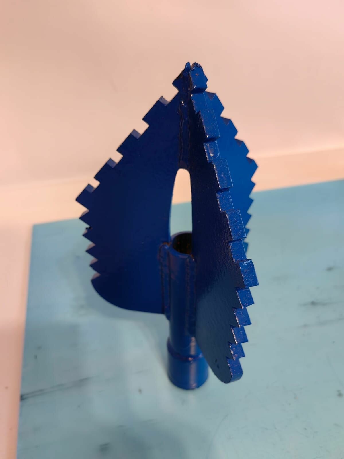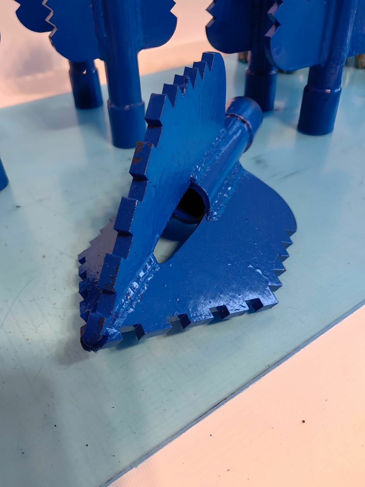 Забурник 160 мм трёхлопастной для ручного гидробурения абиссинской скважины. Наконечник выполнен из стали Г65. Толщиной 8 мм. Применяется для обсадки 110 трубой. Диаметр соединения резьбы 1 дюйм.