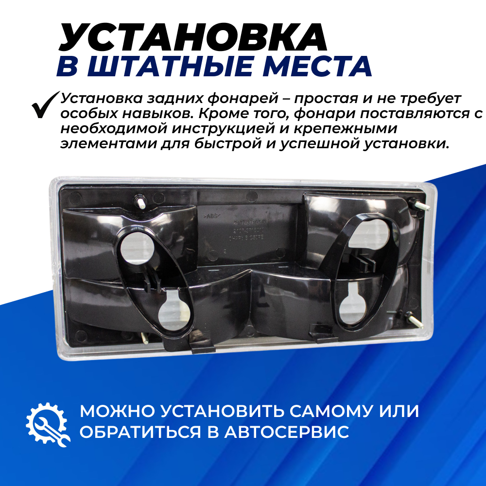 Задние фонари ВАЗ 2107, 2105 прозрачные комплект левый правый корпус 2шт. - это привлекательный и стильный внешний вид вашего автомобиля, важный фактор, который создает хорошее первое впечатление. Если вы хотите внести некоторые изменения в тюнинг своего ВАЗ 2105, 2107 и придать ему индивидуальности, фонари задние ваз 2107 прозрачные – именно то, что вам нужно! ВАЗ 2107 задние фонари прозрачные представляют собой идеальное сочетание современного стиля и высококачественного освещения. Задние фонари на ваз 2107 выполнены из прозрачного АБС пластика, что придаст вашему автомобилю роскошный и стильный внешний вид. Прозрачные стекла добавляют дополнительную ноту загадочности и утонченности, делая ваш автомобиль по-настоящему уникальным. Однако, задние фонари ВАЗ 2107 призрачные не только внешний элемент тюнинга, но и полностью функциональные задние фонари. Цена указана за комплект, который включает в себя левый и правый прозрачные задние фонари. Это позволяет вам заменить оба задних фонаря одновременно, чтобы создать полный образ и единый стиль вашего автомобиля. Приобретая задние фонари ВАЗ 2107 прозрачные вы можете быть уверены в их высоком качестве и долговечности. Они изготовлены из прочных материалов, которые не боятся атмосферных воздействий и встречается с высоким вниманием к деталям, чтобы обеспечить вам продукт наивысшего качества. Установка задние фонари ВАЗ 2107 прозрачные – простая и не требует особых навыков. Они легко подходят к автомобилю и позволяют заменить старые задние фонари на новые без проблем. Кроме того, фонари поставляются с необходимыми инструкциями и крепежными элементами для быстрой и успешной установки. Подключение: Штатное