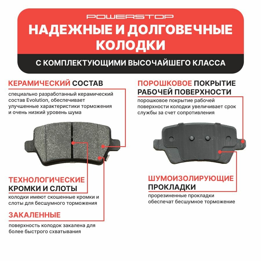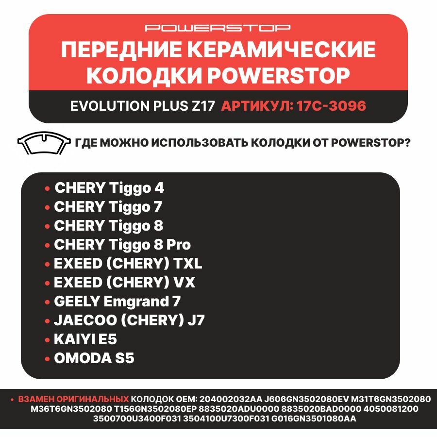 Задние керамические тормозные колодки POWERSTOP Evolution Z17 на CHERY Tiggo 4/7/8Pro EXEED TXL/VX GEELY Emgrand 7 JAECOO J7 KAIYI E5 OMODA S5