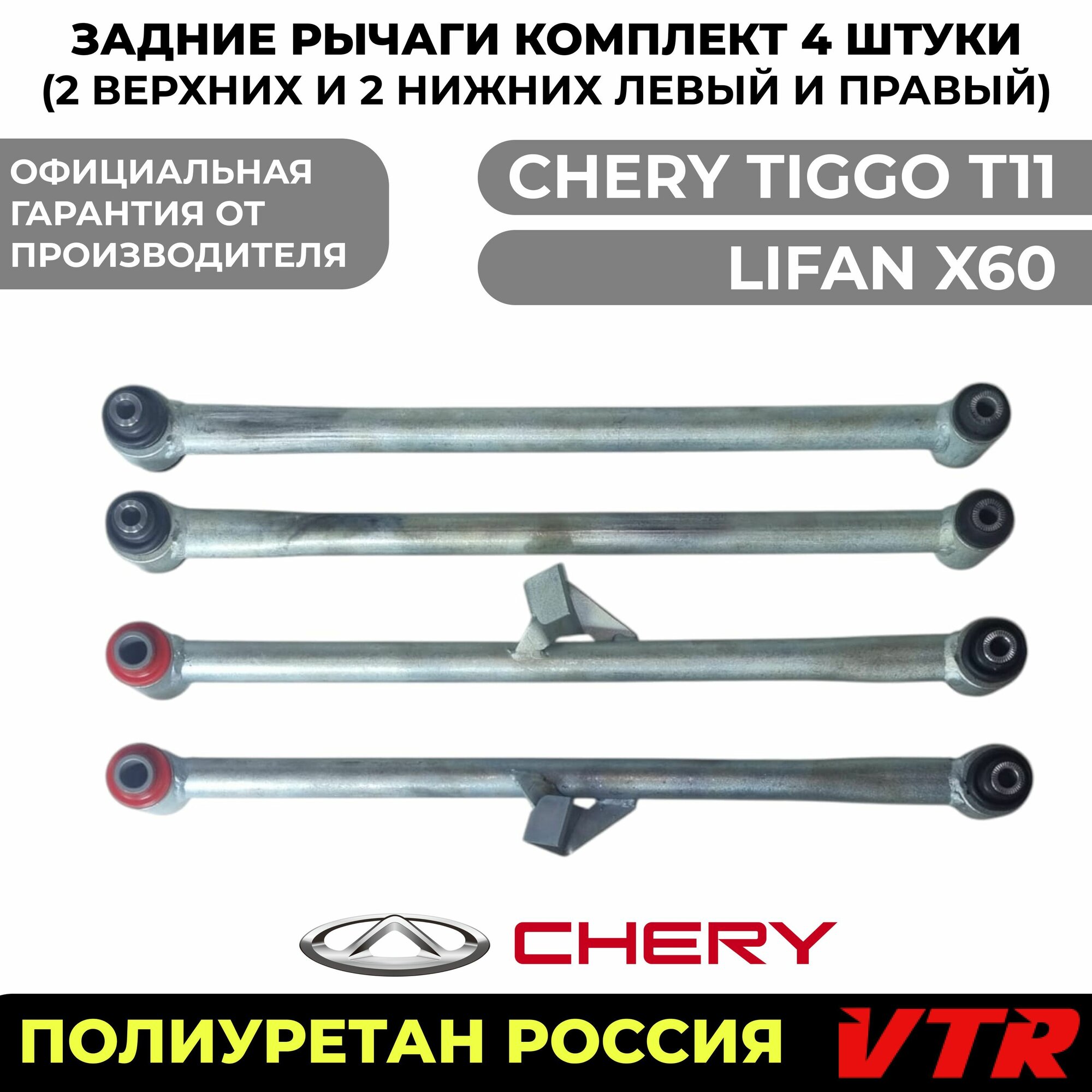Купить Задние рычаги Чери Тигго Лифан X60 (Chery Tiggo Lifan X60) комплект из 4 штук (2 верхних + 2 нижних) полиуретан VTR с доставкой по всей России.