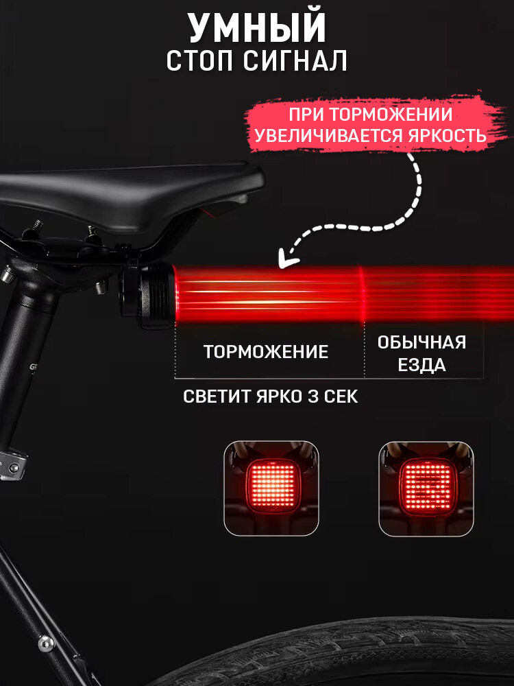 Задний фонарь на велосипед ROCKBROS умный, аккумуляторный, с зарядкой через USB: сравнение цен, характеристики, фото, актуальное наличие и цены.