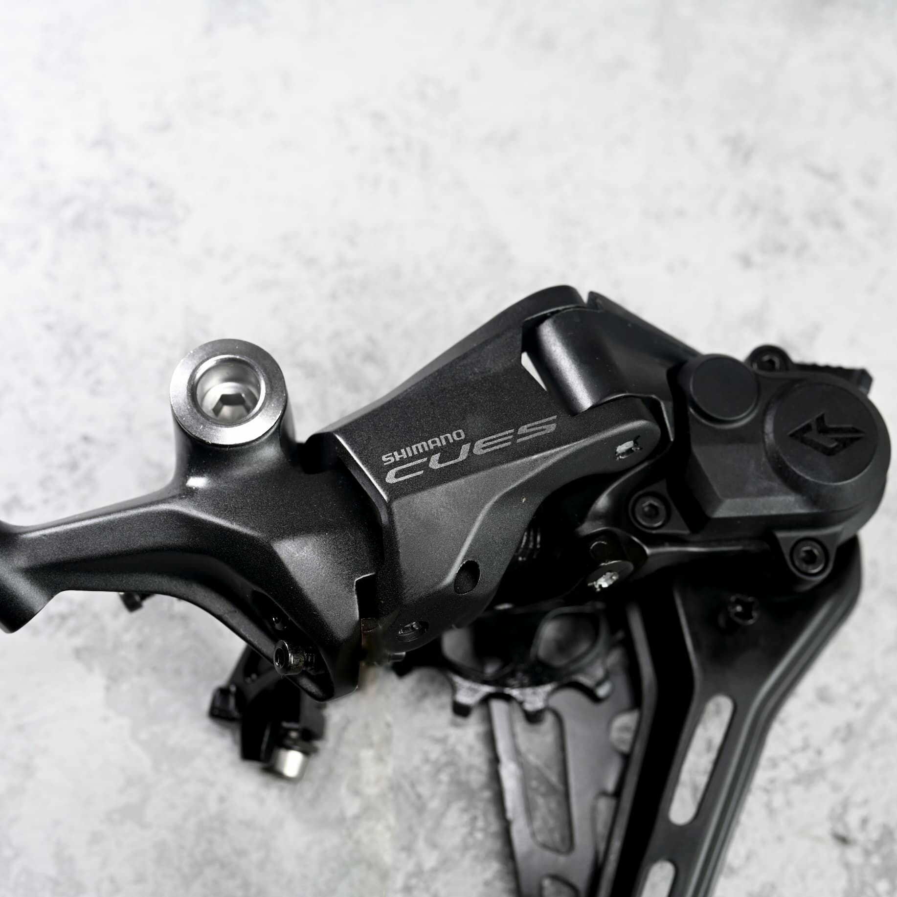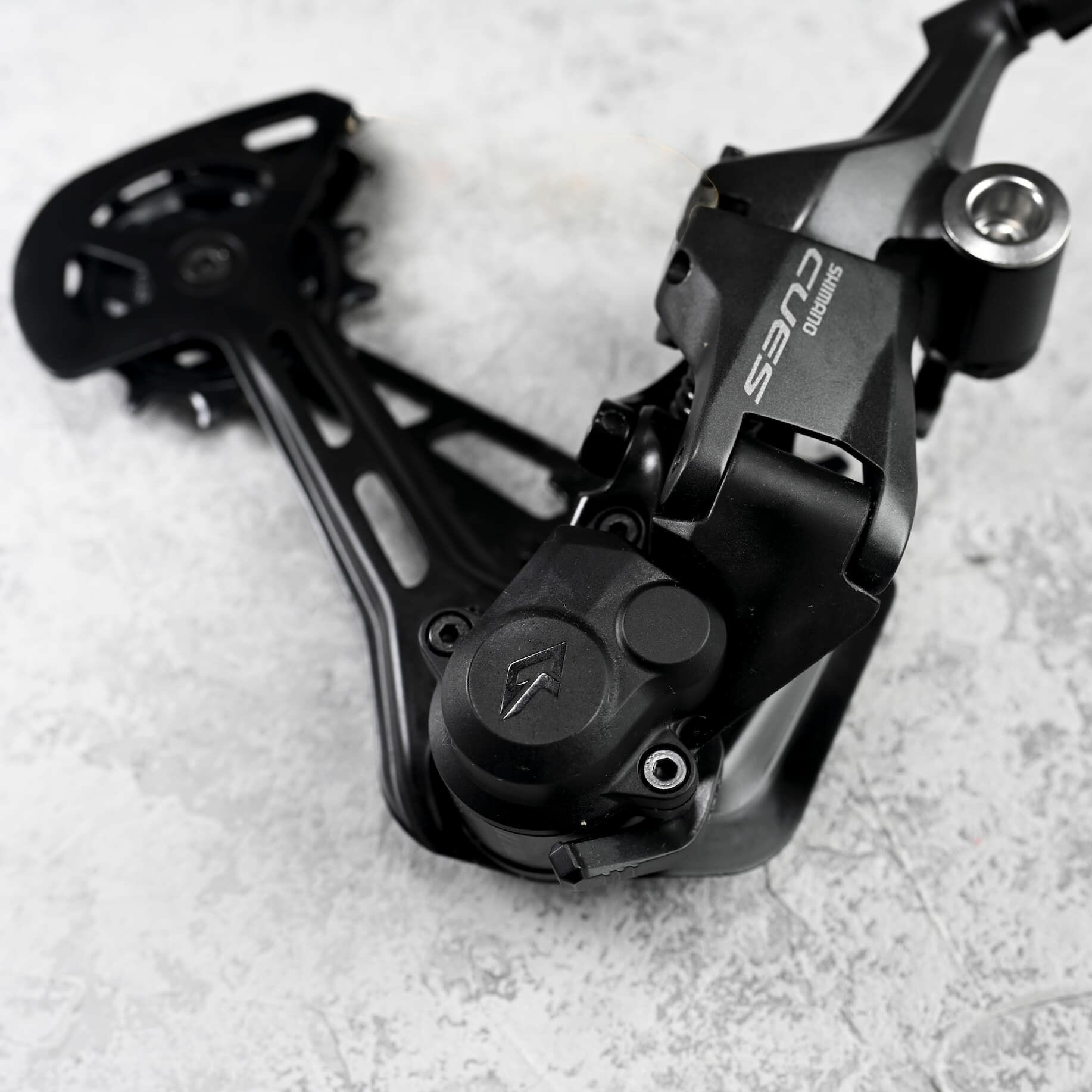 Задний переключатель скоростей Shimano CUES RD-U6000 подходит для трансмиссий Linkglide 1x10 и 1x11 скоростей для спортивного горного велосипеда и туристического использования. Он имеет так называемый стабилизатор цепи Shadow Plus, который предотвращает раскачивание цепи даже на неровной поверхности и таким образом противодействует падению цепи. Задний переключатель имеет общую емкость 39 зубьев и совместим только с системой на одну звезду, при этом самая большая кассетная звездочка имеет максимум 50 и минимум 48 зубьев. Для экономии веса, за исключением стального каркаса, большинство деталей изготовлены из алюминия. RD-U6000 одобрен для электровелосипедов и впечатляет долговечностью и в этой области.